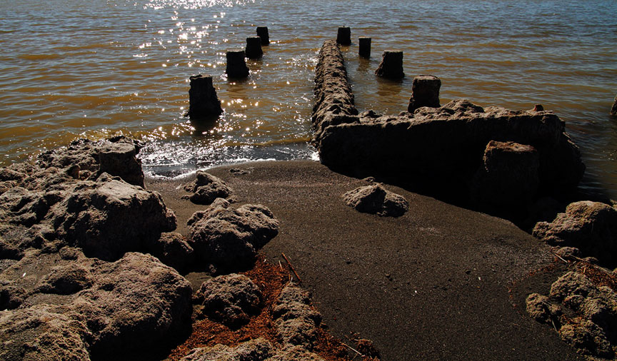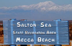 Bombay Beach is a small town on the east shore of the Salton Sea, the ruins of Bombay Beach attract many photographers and visitors. Sunken trailer park - at the south end of Avenue E. In the 1980s, the water level of the Salton Sea rose and fell several times. The town of Bombay Beach was partially inundated by these fluctuations and a berm was built on the south end of town to prevent further flooding. The remains of a trailer park can be seen with some of the buildings and trailers half-buried in mud.
