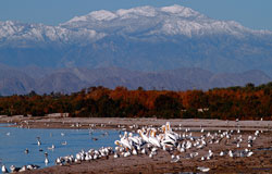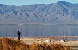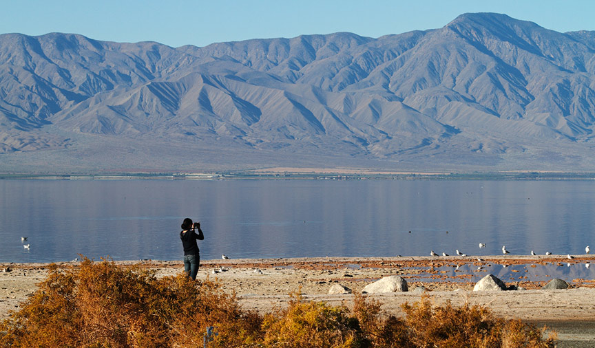 The Salton Sea, located in the southeastern corner of California, is actually a lake which occupies a desert basin known as the Salton Sink. This body of water covers a surface area of 376 square miles, making it larger than Lake Tahoe and Mono Lake. In fact, the Salton Sea is the largest lake in California. The Sea was created by a flood in 1905, in which water from the Colorado River flowed into the area.